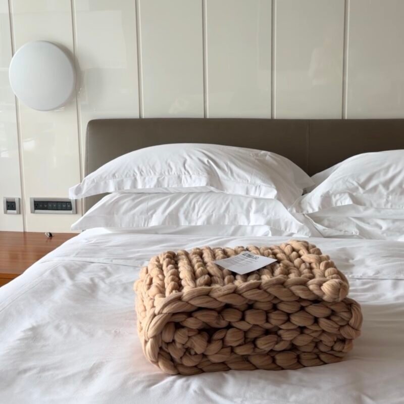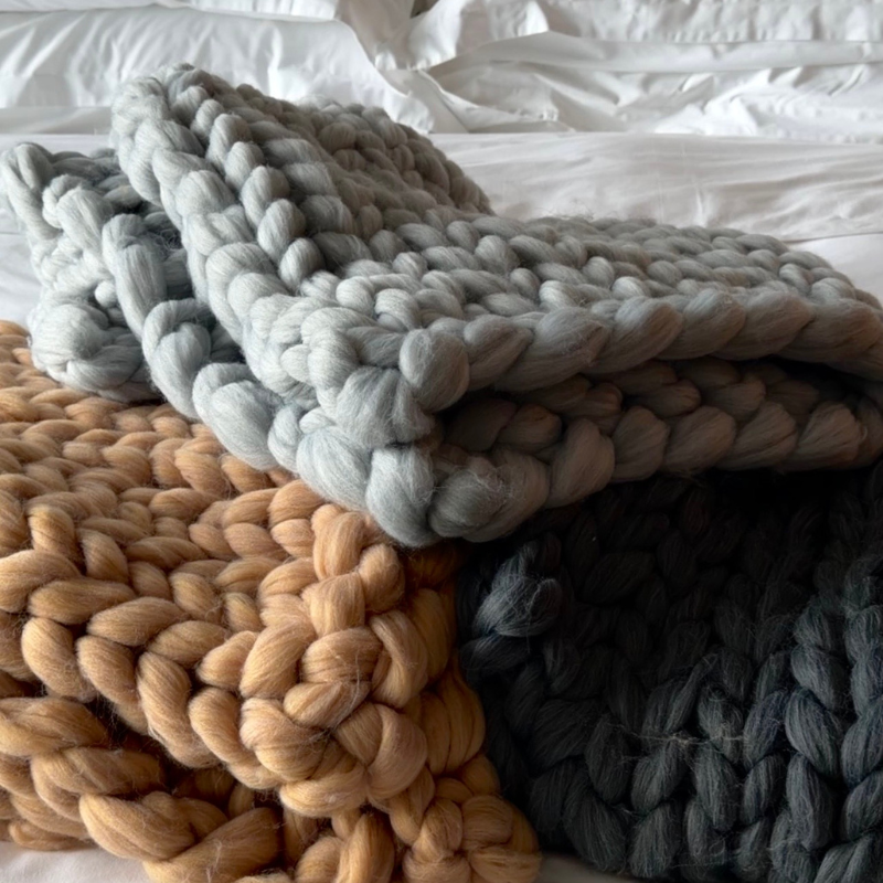 灰色展現沉穩簡約,裸粉色則帶來柔美溫馨,各自散發不同氛圍,卻同樣提升居家質感。厚實的重量感貼合身體,能讓人快速放鬆,既能保暖也能成為家中的裝飾亮點。置於沙發、床尾或椅背上,皆能增添一份溫潤的氛圍。