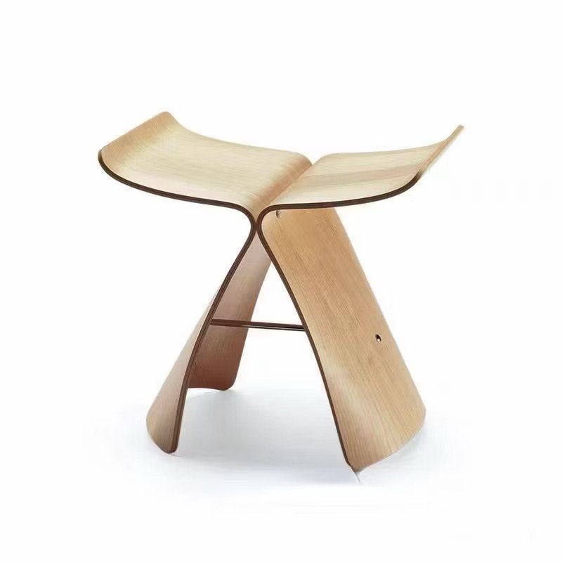 椅凳通體採用高品質的實木打造,保留了木材天然細膩的紋理(Natural grain pattern)。在自然光線的照射下,淺棕色的木質色調散發出溫暖的光澤,觸感溫潤厚實,每一處細節都經過精細的打磨處理,展現出極致的工藝水準。