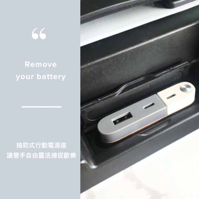 行動電源座:可外接行動電源,隨時為手機或平板充電,長途等待也不怕沒電。