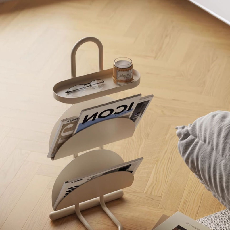 這款雜誌架採用了極具辨識度的流線型 U 型提手與半圓弧形層板設計,造型圓潤且充滿律動感。其設計靈感源自 mid-century modern(中世紀現代風)的經典元素,卻以更簡約、俐落的現代金屬工藝呈現。無論是熱情內斂的勃根地紅、充滿生機的森林綠,還是優雅百搭的奶油白,每一種配色都能成為空間中的視覺焦眼。