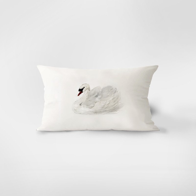 是一款為日常空間留下留白的抱枕。畫面中的白天鵝以柔霧水彩筆觸呈現,羽翼層層暈染,如同在靜水之上緩慢滑行,沒有喧嘩,只留下平穩而安定的氣息。